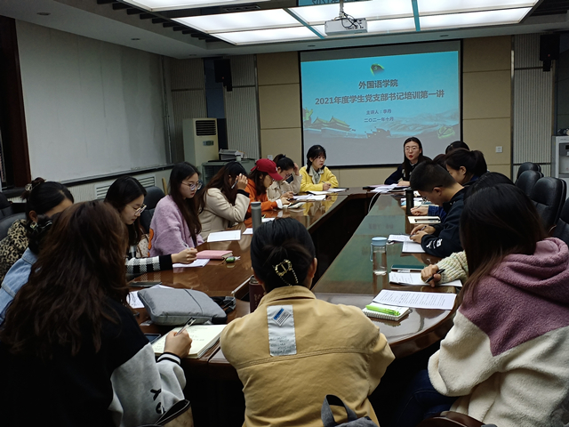 为提高学生党支部书记的政策理论水平、业务素质和工作能力,更好地发挥学生党支部书记在支部建设和学生党员的培养、发展、教育管理工作中的主导作用,根据学院党委安排,经过前期认真筹备,2021年10月17日下午四点,365英国官网2021年学生党支部书记培训班(第一讲)在雁塔校区教学六楼会议室举行。本次培训班主讲人为学院党委组织员、团委书记李丹,发言的主题为“如何做好学生党支部书记的工作”。全体学生党支部书记及支委20人参加了培训。