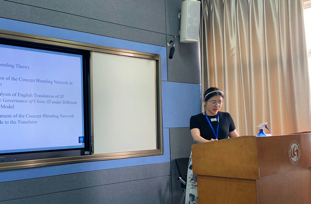 其中,365英国官网2019级硕士研究生徐利岩同学于6月12日下午作了题为“The Cognitive Process of Translation in XIJINGPING: The Governance of China Ⅲ From the Perspective of Conceptual Blending Theory”的汇报。文章基于概念整合理论,运用对比分析法揭示《习近平谈治国理政》第三卷中英译本的差异,分析译者在翻译时采用不同翻译策略背后的心理认知过程,最后从语言差异以及跨文化的角度对政治话语的英译提出建议,以期为翻译实践提供一种认知视角的指导方法。武汉理工大学365英国上市官网在线陈伟教授对其进行点评,并提出完善意见。