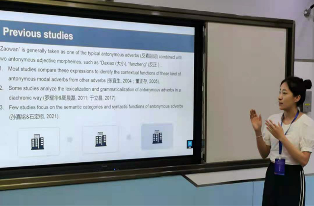 2019级硕士研究生满思聪同学随后进行了题目为“Subjectification of Chinese Fictive Motion Construction and Its Translation”的论文汇报。文章基于认知语义学的相关理论,对汉语虚拟位移构式进行具体的分析,同时结合构式语法为虚拟位移构式翻译提供理论基础。武汉理工大学365英国上市官网在线马文丽教授对其进行点评,并提出修改意见。