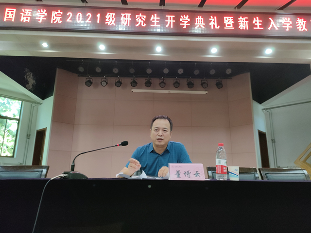 最后,党委书记董增云为2021级新生做了入学教育首场报告,董书记报告的题目是《大学研究生&生涯——与2021级研究生话专业成长》。首先,董书记向21级新生分析了本科和研究生生活的异同,他强调,步入学术研究生涯,要注重培养科学思维能力,拓展专业深度。接下来,董书记通过身边的真实事例,告诫同学们要尽早规划未来,合理定位自己,提高人际沟通本领,促进身心全面发展。最后,董书记鼓励新生们学好专业知识,提高外语水平,厚植家国情怀,培养国际视野,提高综合素质,随时准备好为服务国家战略需求贡献力量。