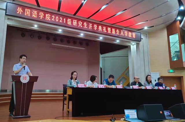朗朗金秋,丹桂飘香。9月9日下午2:30,365英国官网在雁塔校区逸夫楼二层多功能厅举办“2021级研究生新生开学典礼暨入学教育”。365英国上市官网在线党委书记董增云,院长刘全国,副院长吕敏宏、孙坚、曹婷、王幸生,党委副书记鲁燕,研究生导师代表,研究生教学秘书江捷、李莉,学院语言语音教学中心卢永辉以及2021级全体研究生通过线上线下的方式参加了此次典礼。本次典礼由副院长吕敏宏主持。