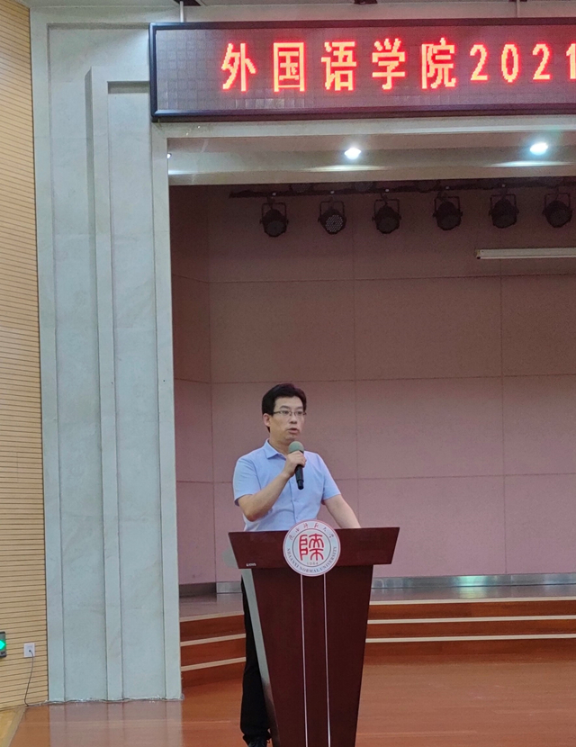随后,在校生代表2020级外国语言学及应用语言学专业硕士生李世琳用英文发言,她建议学弟学妹提前做好人生规划,坚定理想信念,在学习和生活中培养责任意识和本领。新生代表笔译专业石亦洁则从保持对知识的探究之心、保持对学术的敬畏之心、永葆对使命和责任的追求之心几个方面,分享了自己在学习中的感受与体悟,表达了对未来外院时光的欣喜与期待。