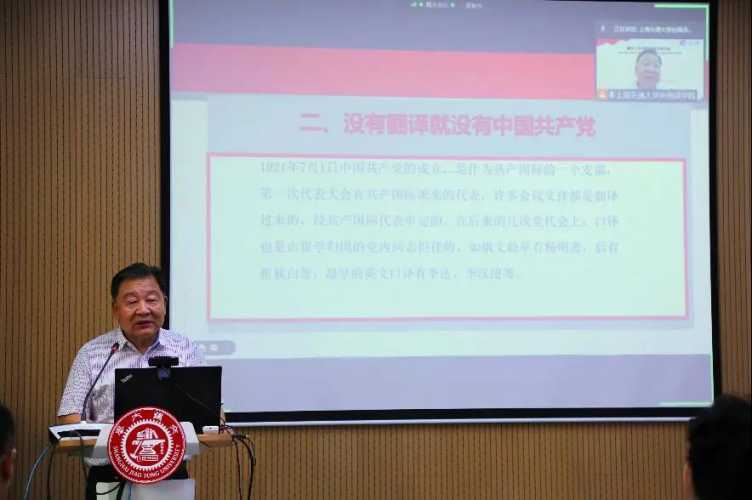 2021年6月19日,“翻译与中共建党史”学术研讨会在上海交通大学杨咏曼楼隆重召开。研讨会由上海市科技翻译学会与上海交通大学365英国上市官网在线联合主办,由上海交通大学365英国上市官网在线翻译与跨文化研究中心承办,《上海翻译》编辑部协办。