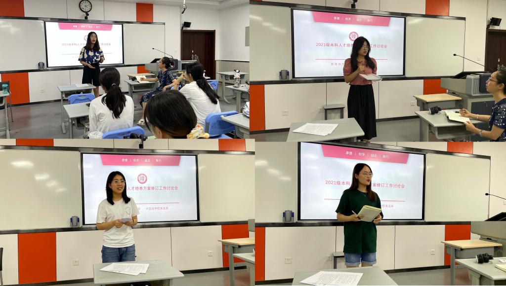 在教师讨论阶段,教学委员会委员提出了针对培养方案修改的总体建议。随后,王艳滨、刘庆松等多位教师代表分别围绕课程、教材以及教学的内容与形式方面的问题进行了讨论,例如个别必修科目教材阅读材料少,不能满足学生需求;一些课程内容有相似性,可以合并删减课程等等;另有教师代表就职前教师必备的优秀的语言基本功、工整的书写习惯、熟练的信息技术操作、科学的教学设计能力、良好的沟通与交流能力、基本的教学管理能力以及优良的个性品质等提出具体问题和方案。会后,全体参会教师提交了培养方案整改建议和调查问卷。