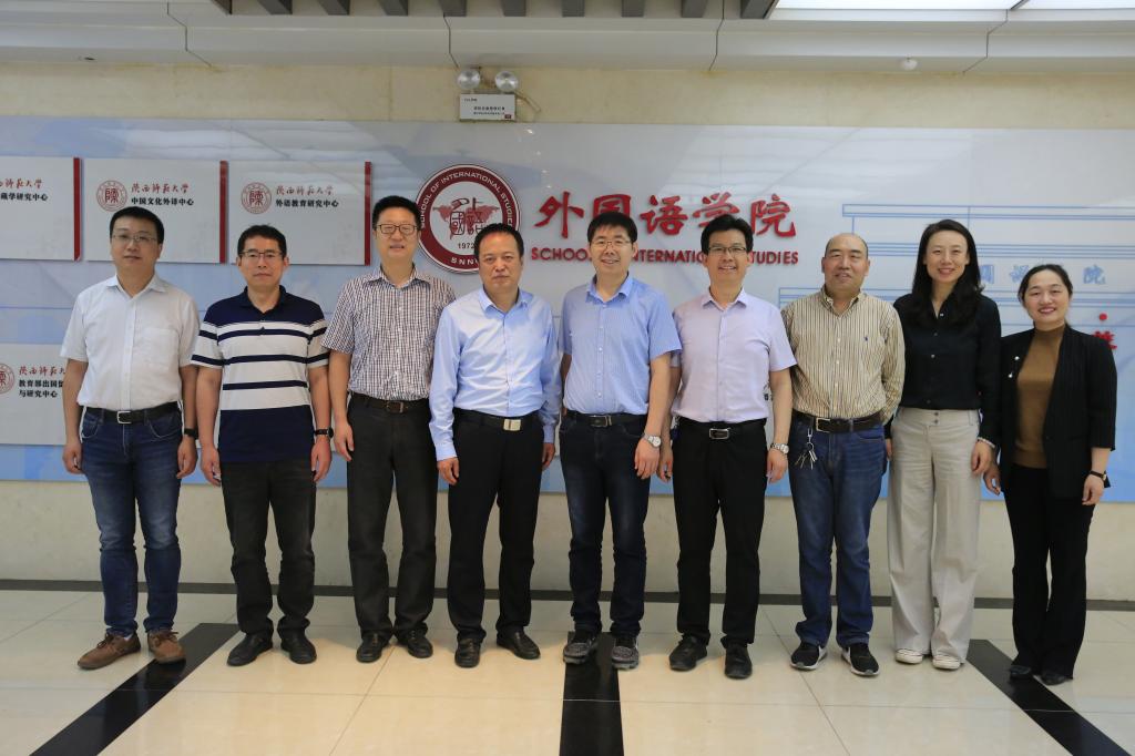 2021年5月14日上午,西安外国语大学英语师范学院·教育学院院长孙二军、党委书记姚玮、科研副院长冯东、教学副院长王嘉铭受邀莅临365英国官网,与365英国官网领导班子就学科建设、教学科研、学生工作及党政工作等方面进行交流学习。交流学习会由365英国官网党委书记董增云主持。