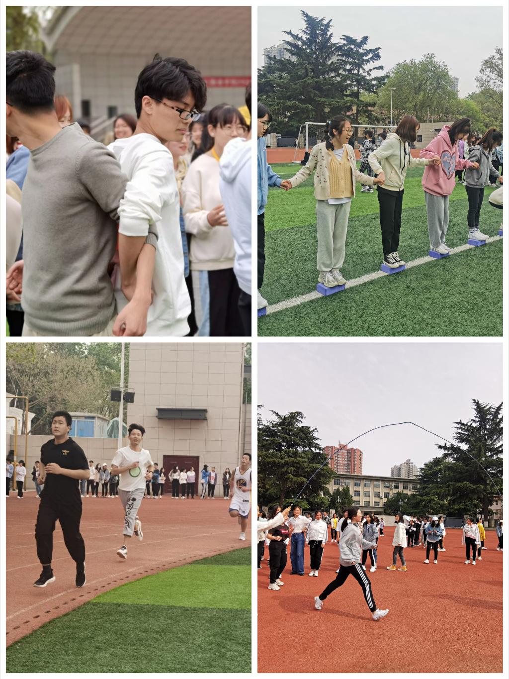 运动会分为竞赛项目和趣味项目,学院师生经过前期的积极报名与准备,在运动场上顽强拼搏,奋勇争先,展现出“更高、更快、更强”的奥林匹克精神。田径场上运动员们无畏奔跑,奋力远跳,努力为自己和自己的代表队争取荣誉,体现了青春的精彩与活力。团体跳大绳、不倒森林、摸石头过河、合力建塔、袋鼠跳、抱球接力跑等,每个项目都有外语学子挥汗如雨恣肆青春的身影,学院师生团结奋进的身影活跃在赛场的每个角落,师生们尽情享受着健康运动带来的欢乐。