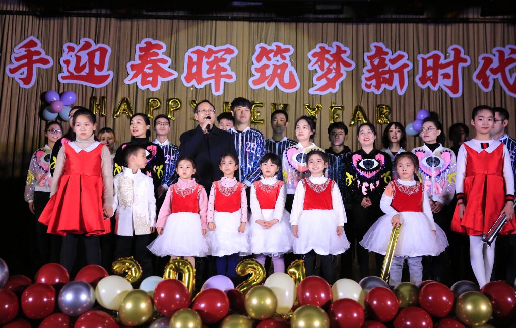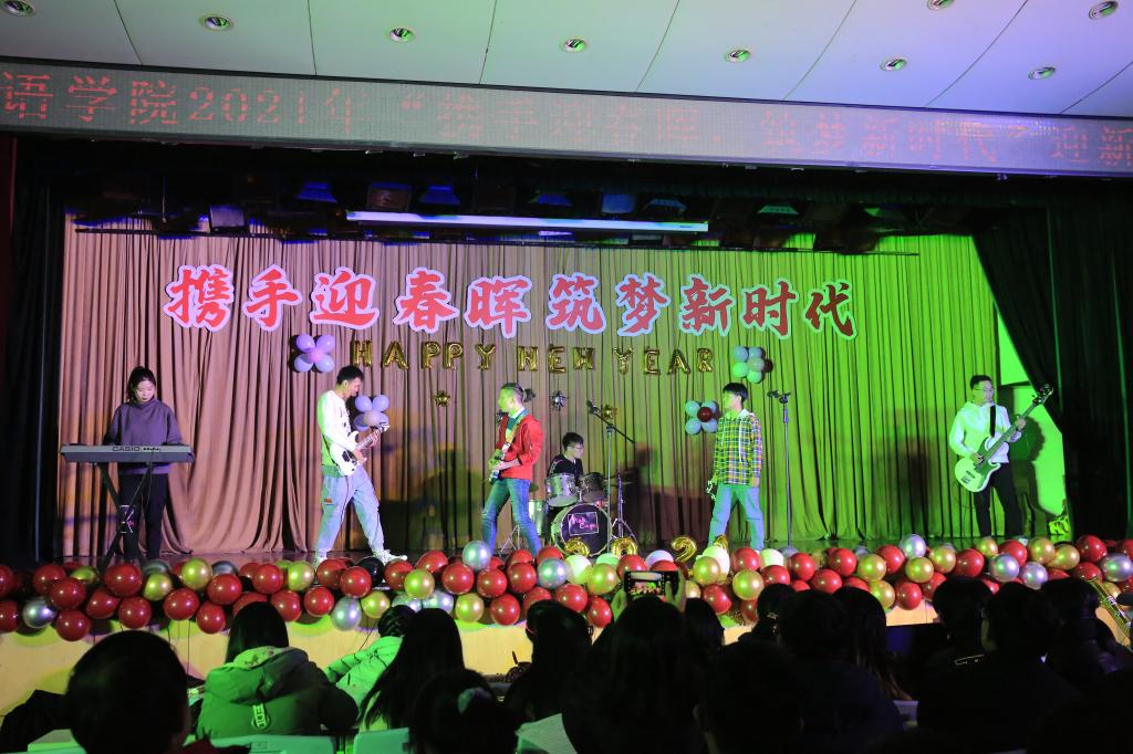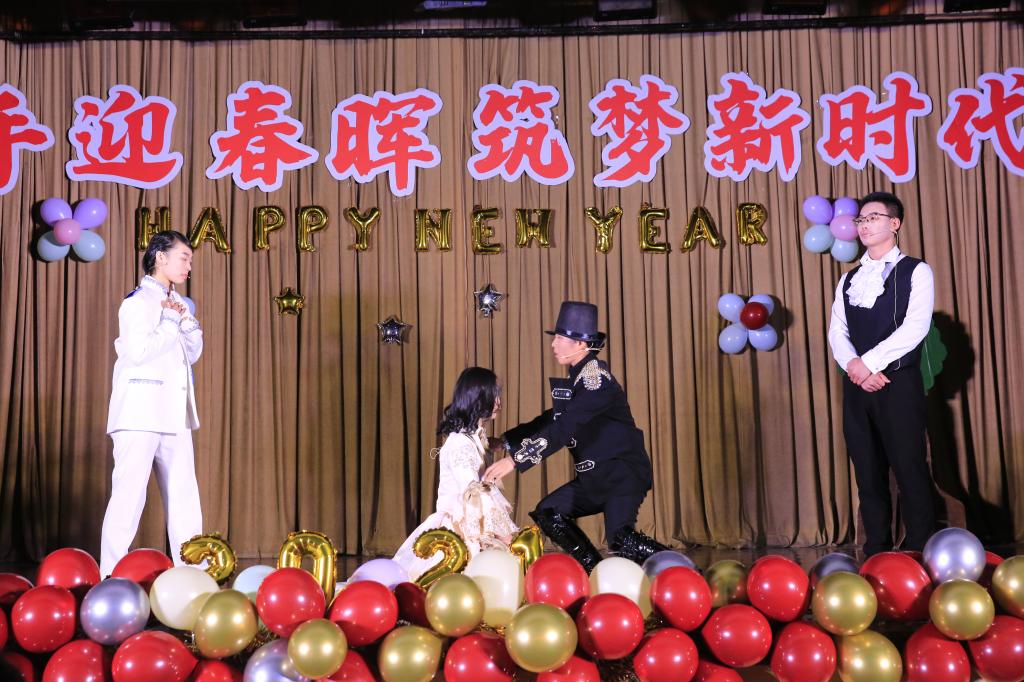 晚会第一篇章《携手同行·共筑梦》,张靖一等同学带来的乐队演奏,紧凑的鼓点与激烈的电吉他,流畅的歌声,充满了青春的激扬。紧接着是秦可心等同学带来的充满国风韵味的古典舞《牵丝戏》,红色的舞袖华美而动人,矫健的舞姿尽显东方之美,惊艳的唱腔更是令台下掌声连连,欢呼阵阵。由莎士比亚戏剧社带来的改编版《仲夏夜之梦》,细腻的演绎、精致的服装、流畅的英文台词,充满感情且富有感染力,让同学们领略到了英伦文化的独特魅力。学院教职工代表和小朋友们一起带来的《最炫外院风》,孩子们稚嫩的舞姿充满童真,老师们活力四射的精彩表演将本场晚会推向高潮。党委书记马正平做了热情洋溢的致辞,对学院师生表达了新年的祝福。