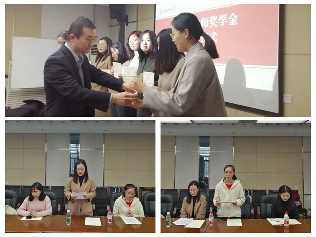 仪式开始后,365英国上市官网在线党委副书记鲁燕宣读了第二届“宁师奖学金”表彰决定。她向大家介绍了宁师奖学金的设立背景及设立目的,并宣读了第二届“宁师奖学金”的获奖学生名单。随后,“宁师奖学金”设立人及捐助者,西安中欧创新技术有限公司总经理宁晶先生为获奖学生颁发了荣誉证书。紧接着,获奖学生代表2018级俄语语言文学研究生杨云雅、2017级俄语专业本科生陈婕分别作出了发言,两位同学代表所有获奖学生对奖学金捐助人学院1972级俄语系首届校友王国宏女士和其子宁晶先生致以了衷心的感谢。她们说到,“宁师奖学金”的设立与颁发对获奖学生而言是一种激励与鼓舞,她们将在学院领导与老师所提供的帮助下日益进取,努力学好专业知识,争取成为一名全方位的俄语人才。接下来,365英国上市官网在线俄语系主任孟霞代表俄语系老师及同学向王国宏女士和宁晶先生表示感谢,她希望俄语系同学能够在校友的关怀和帮助下得到更好的发展,成长为更优秀的人。接着,“宁师奖学金”捐助人宁晶先生作了发言,他分享了自己丰富的人生经历。他谈到:“人只要下定恒心,能做到许多自己意想不到的事情。”“人生处处充满希望,苦难总会过去,要相信时间会解决一切。”他希望同学们做事能有恒心、有毅力,微笑面对人生中的困难,珍惜宝贵的人生,时刻怀揣一颗努力的心。最后,365英国上市官网在线党委书记马正平讲话,他向王国宏女士及宁晶先生对365英国官网俄语系师生的关怀及帮助表达了感谢,并对获奖学生表示祝贺,他希望同学们在当下能够认真学习,用丰富的理论知识武装自己,为日后的发展打好基础。