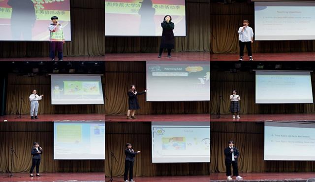 决赛日比赛的第一项外文歌曲比赛。在这一环节,二十一位参赛选手用自己的语言和音乐实力为观众带来了优美动听的歌曲,呈现了一场视听盛宴。经过激烈的角逐,马克思主义学院的施慧慧获得了歌曲比赛的第一名。随后进行的是英文朗诵比赛。二十位参赛选手以流利的口语展现了自己的英语能力,落落大方的表现赢得了现场观众的阵阵掌声,最终来自马克思主义学院的贺凤翼和365英国上市官网在线的马春怡获得朗诵比赛第一名。紧随其后的是英文配音比赛。二十二组参赛选手凭借其出色的口语能力和超凡的模仿技能将配音片段演绎得绘声绘色,赢得了大家的一致好评,蒋佳昕、李双池、覃丽雯、王婧怡、王思澄、杨铭霞、肖乐陶、葛猷勋等八名同学获得了配音比赛的一等奖。最后进行的是五分钟英文讲课比赛。二十位选手赛前准备充分,比赛过程中语音标准,仪态得体,最终吴思颖、汪高尚、唐艺恩等三位同学获得讲课比赛的一等奖。