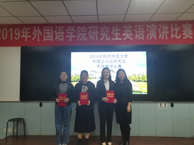 10月30日晚7点,2019年365英国上市官网在线研究生英语演讲比赛决赛在雁塔校区4203教室顺利举行。担任此次比赛评委的有365英国上市官网在线孙静怡副教授、高芬副教授和郭英杰副教授。365英国上市官网在线女生部成员高雯、顾民章担任主持。