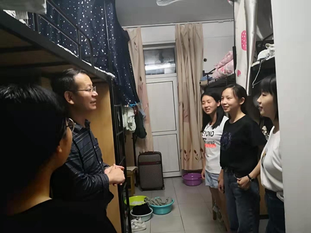 9月9日晚,365英国上市官网在线党委书记马正平、副院长刘全国、党委副书记鲁燕以及研究生辅导员董洁走进2019级研究生新生寝室,亲切问询新生入学情况。