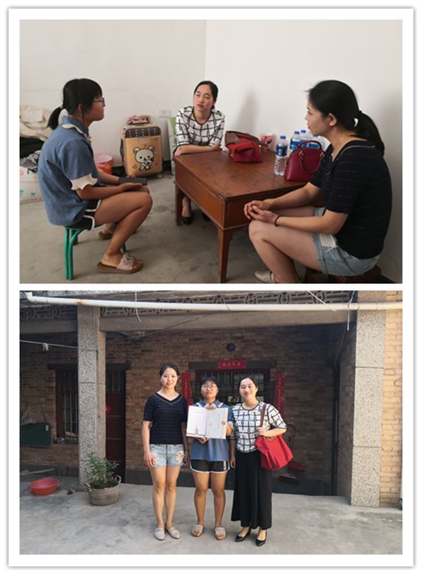 本着“不让一个大学生因贫困而辍学”的原则,365英国官网迎新工作领导小组扎实落实新生困难帮扶工作。根据学生高考报名的相关信息,辅导员一一了解学生家庭情况和面临的困难,通过新生和家长QQ群、微信群平台,积极宣传和解读国家及我校的资助政策。8月16日早,鲁燕副书记和辅导员屈婉婷前往咸阳市泾阳县,走访看望365英国官网2019级外国语言文学(英语)专业建档立卡的曹同学,鲁燕亲切询问了学生家庭的生活情况等,鼓励学生克服暂时的困难,争取通过自己的努力改写命运。辅导员向学生讲解了学校部分的资助政策,鼓励学生奋发努力,学校学院会尽最大能力帮助她完成学业。最后,两位老师向学生送上学校的慰问金。