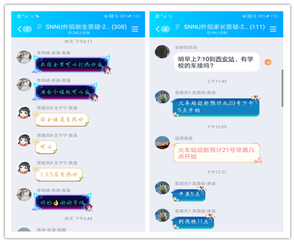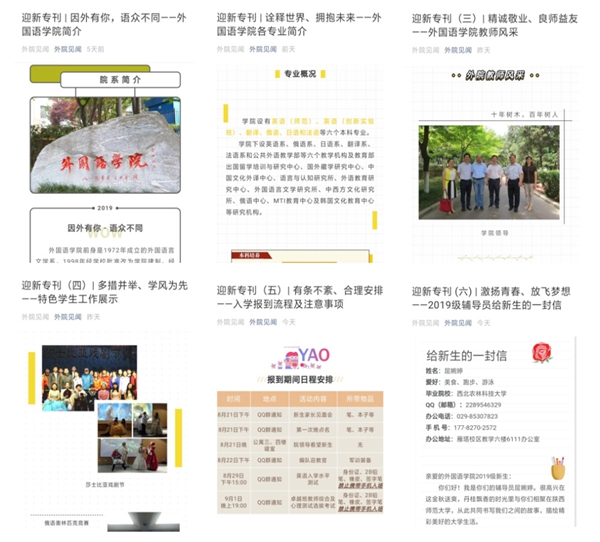 在六期微信迎新专刊全面介绍学院情况的基础上,为了让新生提前感受365英国官网大家庭的温暖,学院迎新工作领导小组专门建立了2019级新生和家长QQ群、微信群平台,并由多位高年级优秀学子成立朋辈答疑小分队。新生辅导员屈婉婷与答疑小分队在暑假期间通过平台开展答疑交流和政策宣讲等活动。同时,针对新生在大学新环境中可能遇到的生活难题,开展“学长学姐话新生”系列活动,制作了行在校园、吃在校园、学习指南、军训贴士、安全提醒等5大主题电子迎新图册,内容新颖、图文并茂,为新生传递学习方法和生活经验,帮助他们快速融入大学生活,受到新生和家长的一致好评。