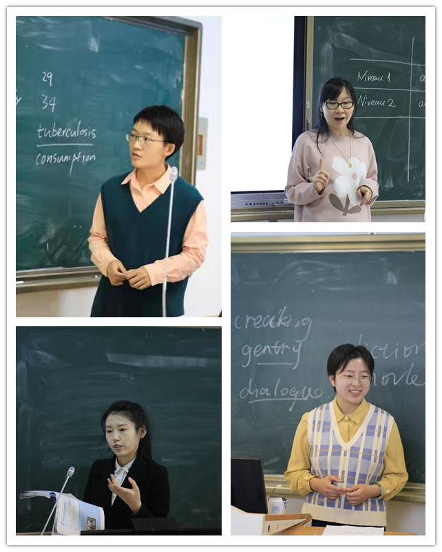 比赛过程中,老师们首先将自己精心准备的教案交给评委老师,然后进行十五分钟的讲课以及五分钟的提问环节。现场各位评委针对7名参赛选手的授课特点提出了相应的意见建议,做到课程思政无痕的融入课堂,体现精神引领和价值引导,有时代感和责任感;备课准备要精研教材、熟知大纲,做好教学设计;授课过程要注意将知识传授与育人相结合,注意把握知识讲授的严谨性、逻辑性,加强师生互动。其中乔溪老师的法语课尤其让人印象深刻,流利的法语,充分恰当的互动,丰富完整的课堂设计,都充分展现了青年教师的风采。
