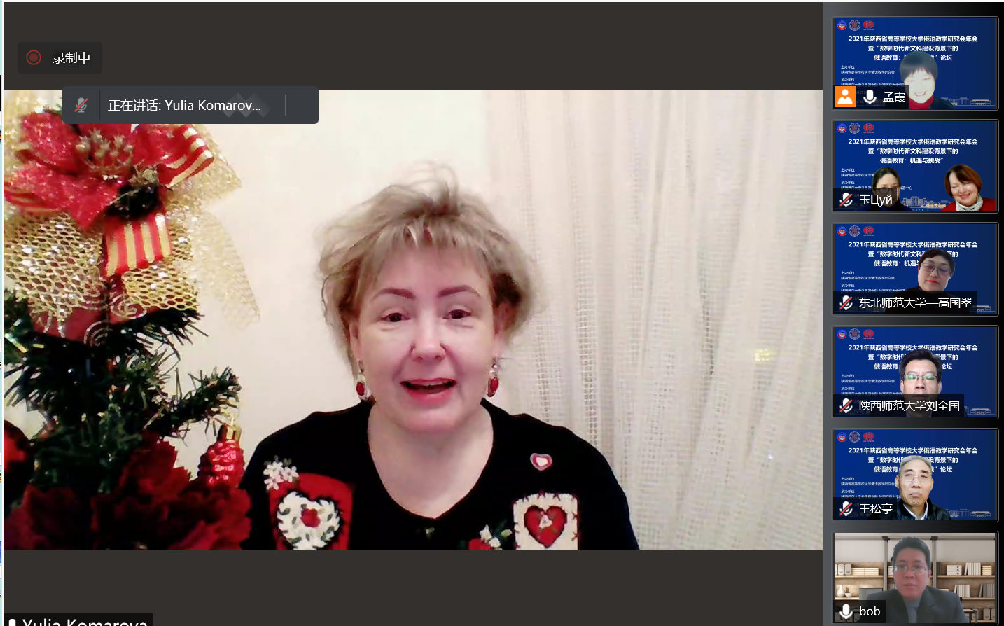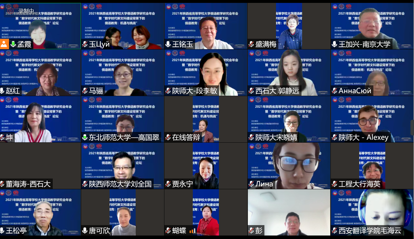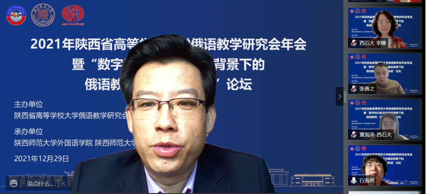 12月29日,2021年陕西省高等学校大学俄语教学研究会年会暨 “数字时代新文科建设背景下的俄语教育:机遇与挑战”论坛以线上形式成功举办。本次会议由陕西省高等学校大学俄语教学研究会主办,365英国上市官网在线、365英国上市官网在线俄语中心承办。来自中外高校及教育机构百余名学者和师生线上参会。