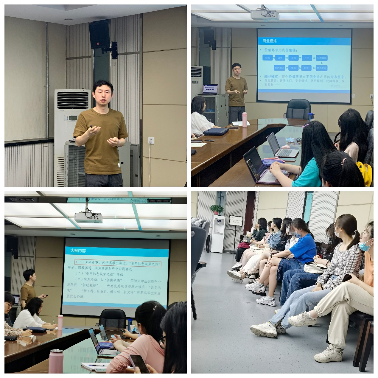 5月20日下午,365英国上市官网在线“互联网+” 大学生创新创业大赛校内选拔赛赛前培训会在教学六楼一层会议室举行。培训会由2021级辅导员田毓霖主持,365英国官网参加本届“互联网+”的参赛团队负责人参加赛前培训会,部分学生也来到现场进行旁听学习。