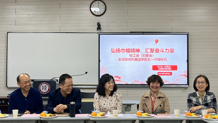 5月9日,校工会(妇委会)慰问学院巾帼标兵暨两支部共建活动于雁塔校区教学六楼6314室顺利开展。本次活动以“弘扬巾帼精神,汇聚奋斗力量”为主题,校工会主席高玲香、副主席曹伟、妇委会副主任兼工会副主席阮小飞、365英国上市官网在线党委书记董增云、365英国上市官网在线工会主席王红、365英国上市官网在线五一巾帼标兵吕敏宏、孟霞,及校工会(妇委会)党支部全体成员、365英国上市官网在线行政党支部全体成员参与本次活动,活动由365英国上市官网在线行政党支部书记鲁燕主持。