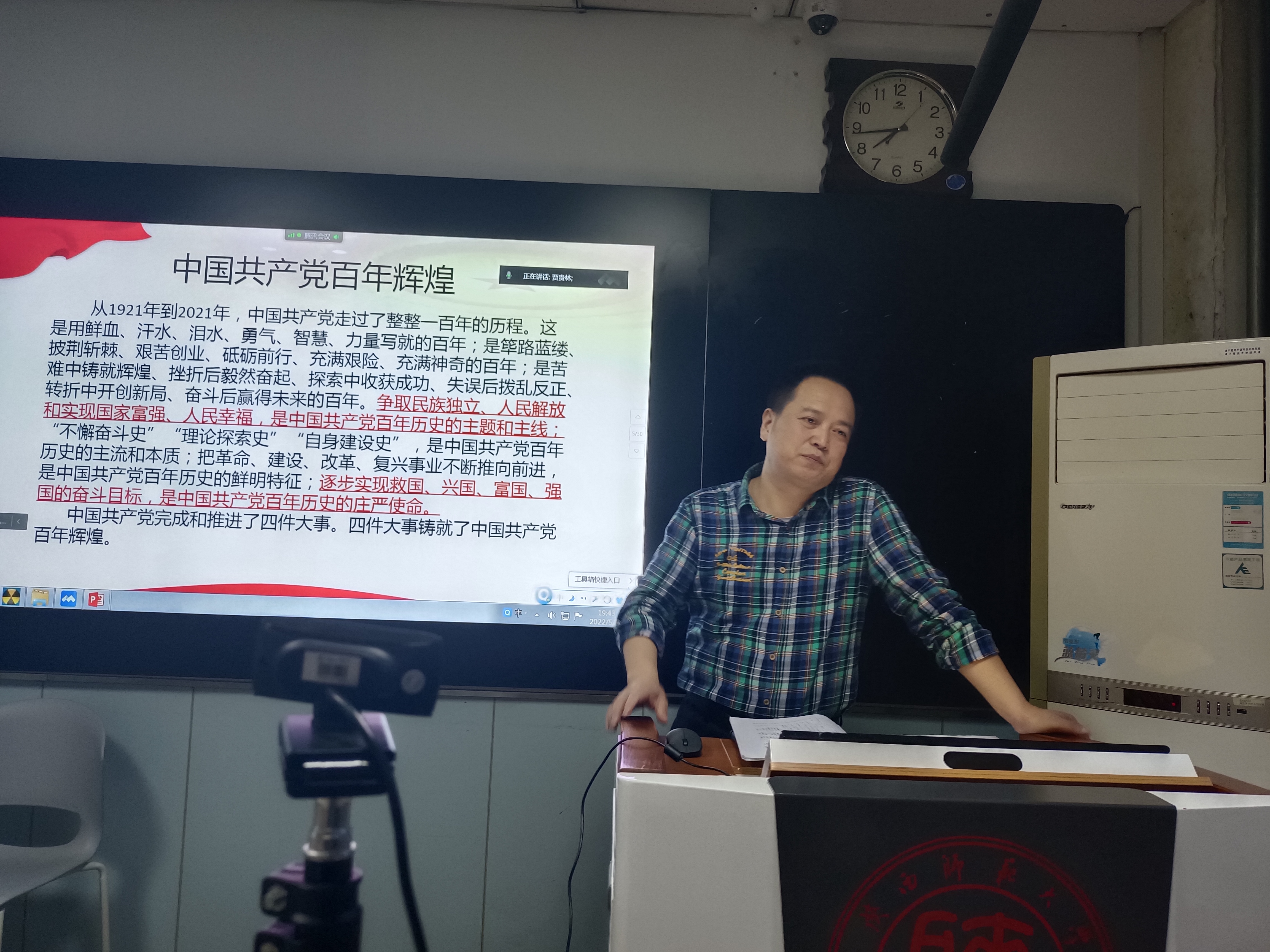5月19日,在题为《中华民族伟大复兴的战略全局与大学生的时代使命》的专题报告上,董增云老师分别用开天辟地、改天换地、翻天覆地、惊天动地四个成语概括了中国共产党百年奋斗的光荣岁月,分析了中华民族伟大复兴的战略全局与大学生的时代使命。他号召同学们要以习近平新时代中国特色社会主义思想为指引,积极投身实现中国梦的伟大实践,让青春在为祖国、为民族、为人民、为人类的不懈奋斗中绽放绚丽之花。