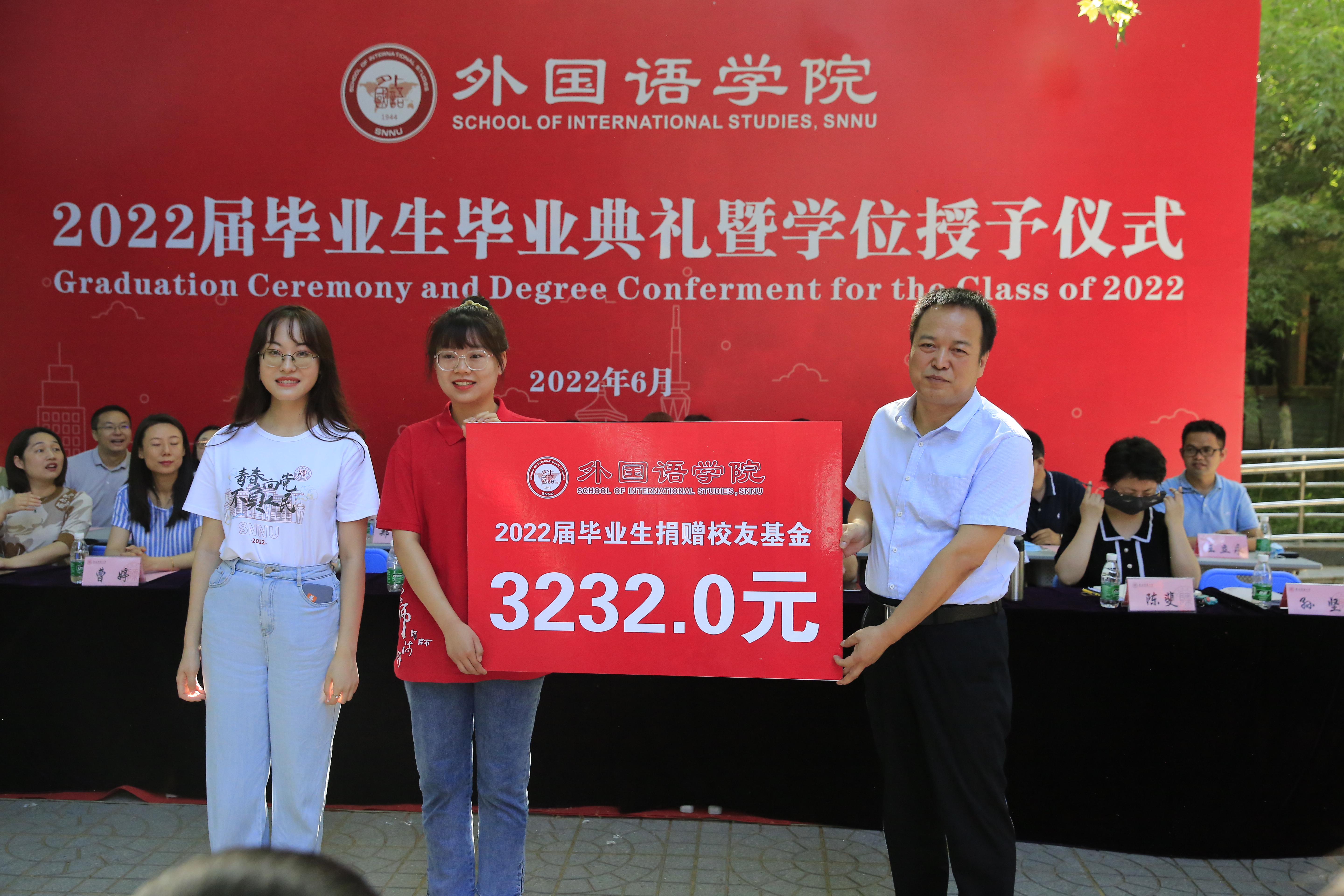 随后,学院党委书记董增云为毕业生代表赠送了毕业纪念品,毕业生也向学院赠送了院友基金。