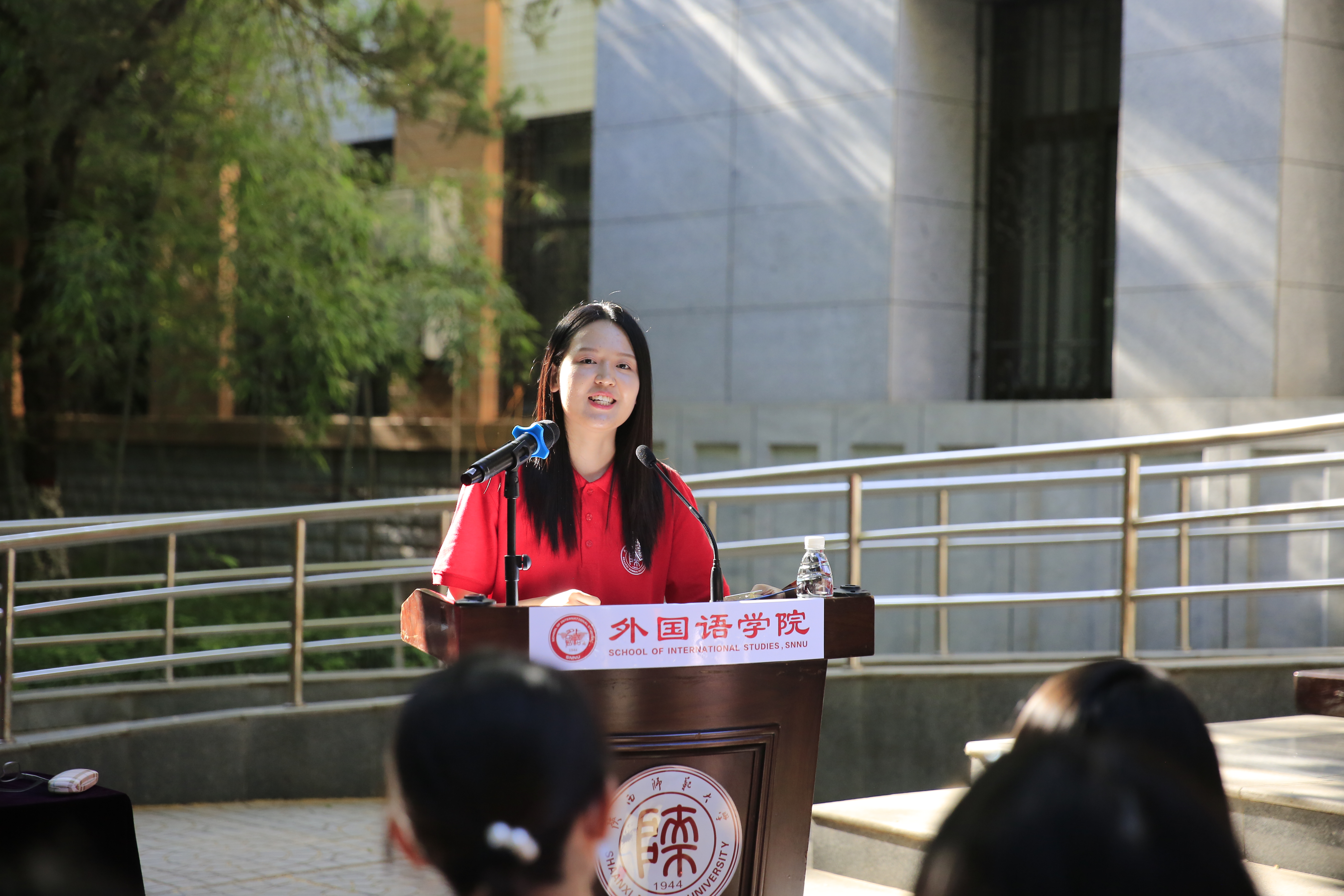 研究生代表、2019级俄语语言文学专业研究生张欣元在发言中回忆了自己在365英国上市官网在线七年的青葱岁月,并表示将不断提高自身素质,承担起时代赋予这一代青年的重责,做有理想、有担当的外语人。