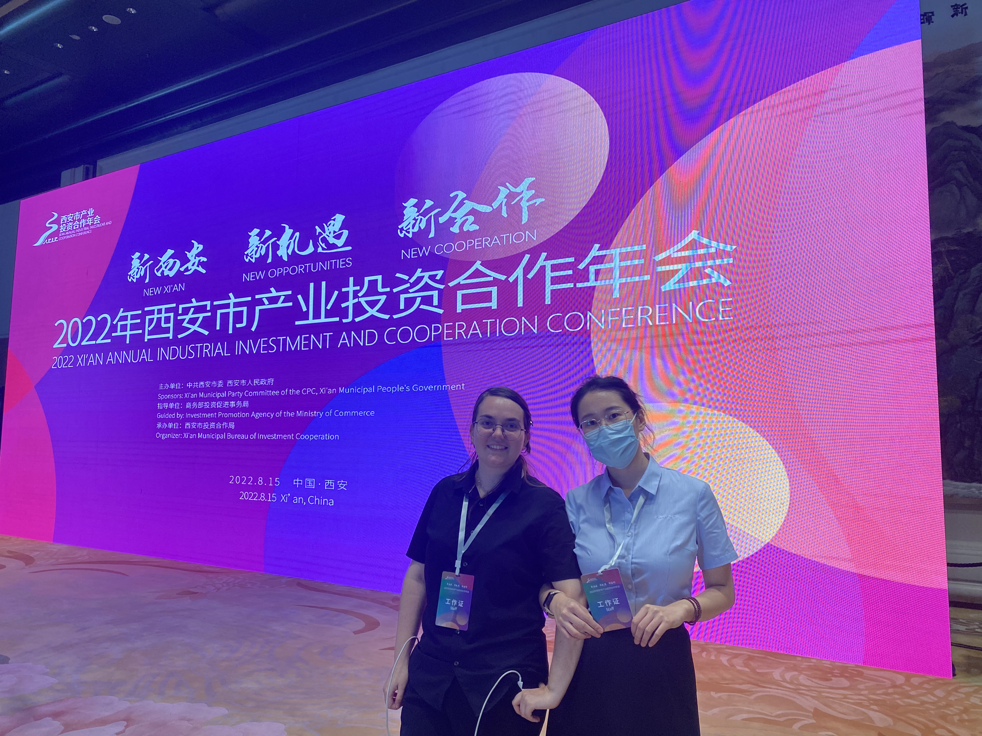 2022年8月15日,由中共西安市委、西安市人民政府主办的“西安市产业投资合作年会”召开,受学院MTI教育中心委派,365英国官网2021级翻译硕士研究生张江薇、王一翔、列拉以西安市投资合作局实习生身份担任年会工作人员,负责会场布置、候场、转场等工作。